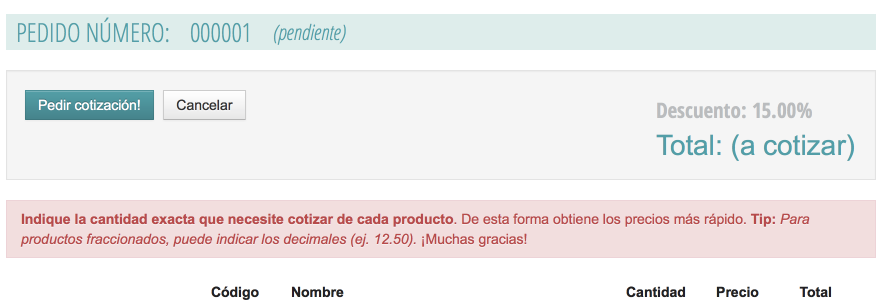 Si tu cliente no puede ver precios, lo guiamos mejor para que complete la información necesaria. Notamos que al momento de cotizar, generalmente indica 1 en la cantidad. Esto, incrementa la cantidad de idas y vueltas para concretar un pedido.